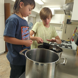 After our lunch break inside, we cleaned our Wild Grapes, counted how many cups we had (6), mashed them, boiled them, strained them and measured out 4 cups of concentrated Wild Grape juice to make jelly with next week. We will be using an Apple from the school Tree for a natural source of pectin and honey as the sweetener. The juice will sit in the fridge over the weekend and while it does, tartaric acid crystals should form. These crystals can really hurt the digestive tract, which is why we didn't go ahead and complete the jelly today. The juice will be poured off the crystals and we will make the jelly from tartaric acid free juice <3