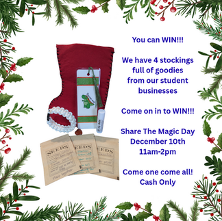 One of our ideas was to have a 4 draws for special stockings that are full of products from students businesses. We also kept track this week in charts in our workbooks of the products we created ourselves and determined how much we would make from those sales (20-25%) to determine if we had made enough product to make our personal financial goals possible.