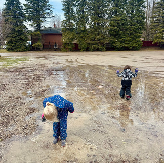 Students loved playing in the variety of spring weather this week! From jumping in puddles, to running around without a coat - it was refreshing! Our outdoor toy rhino (aka: Rhiny) needed a bath so that was done on our thunderstorm day.